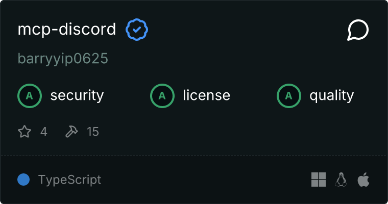 A Discord MCP (Model Context Protocol) server that enables AI assistants to interact with the Discord platform.