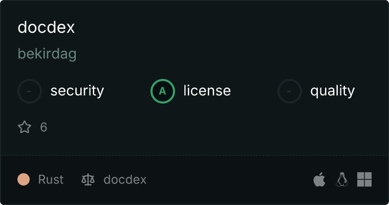 Docdex is a local-first indexer and search daemon for documentation and source code. It sits between your raw files and your AI assistant, providing deterministic search, code intelligence, and persistent memory without ever uploading your code to a cloud vector store.