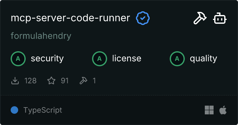 mcp-server-code-runnernpm install mcp-server-code-runnerdocker.io/formulahendry/mcp-server-code-runner:0.1.8docker pull docker.io/formulahendry/mcp-server-code-runner:0.1.8:undefined