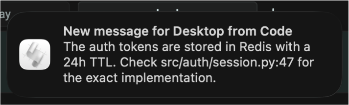 Startup preview: When Code starts, you'll see a preview of any pending messages from Desktop. Use /get to read them in full.